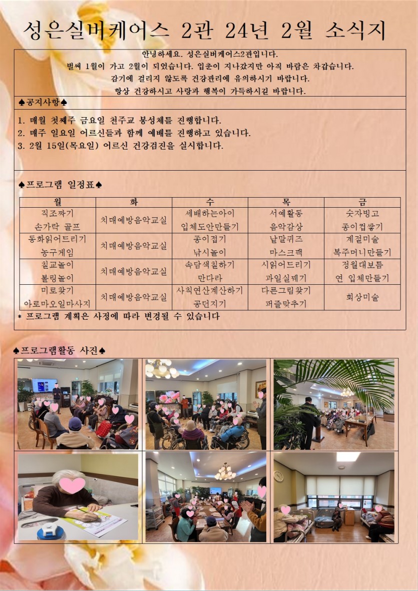 안녕하세요, 성은실버케어스 2관입니다^^