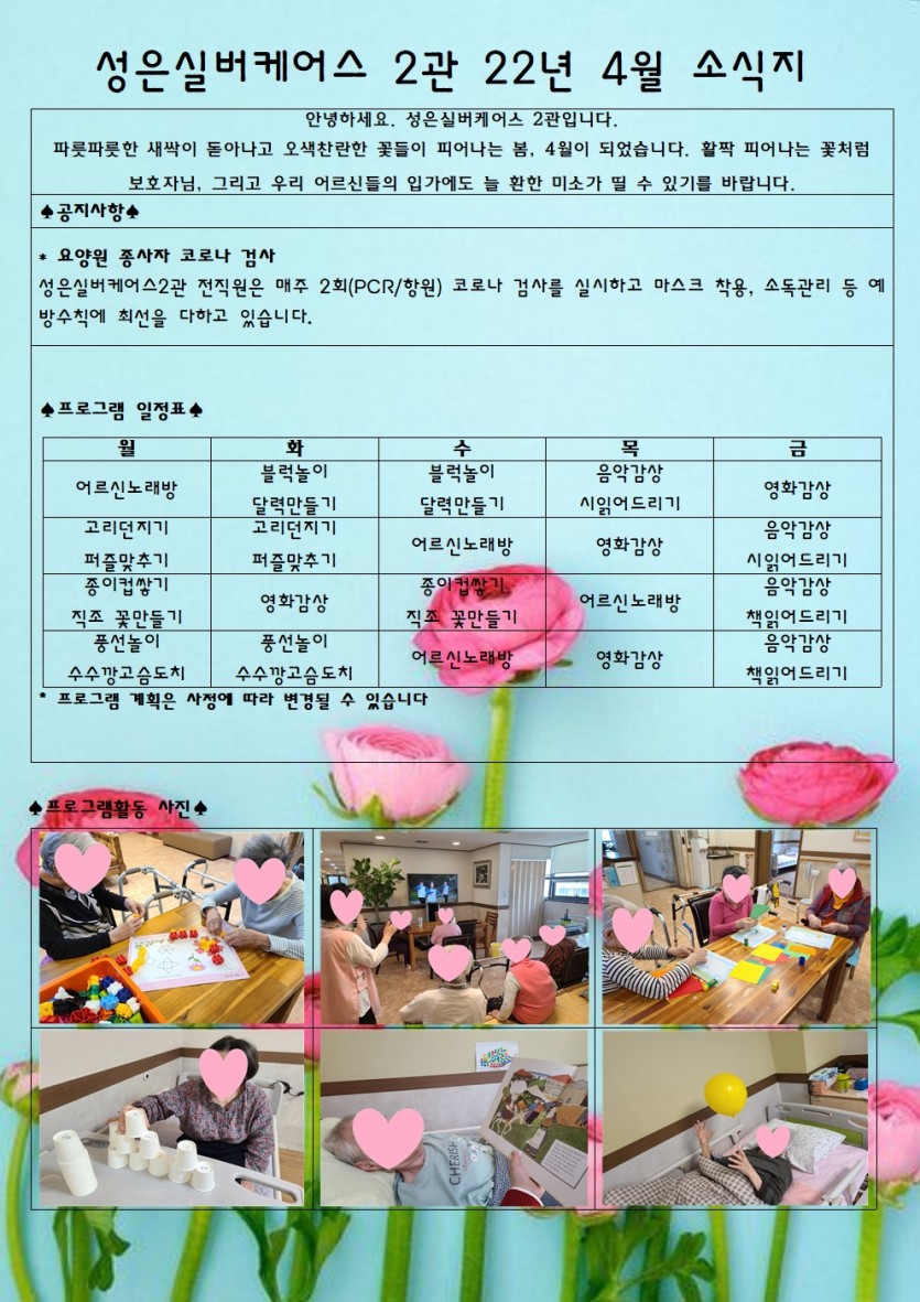 안녕하세요, 성은실버케어스 2관입니다^^