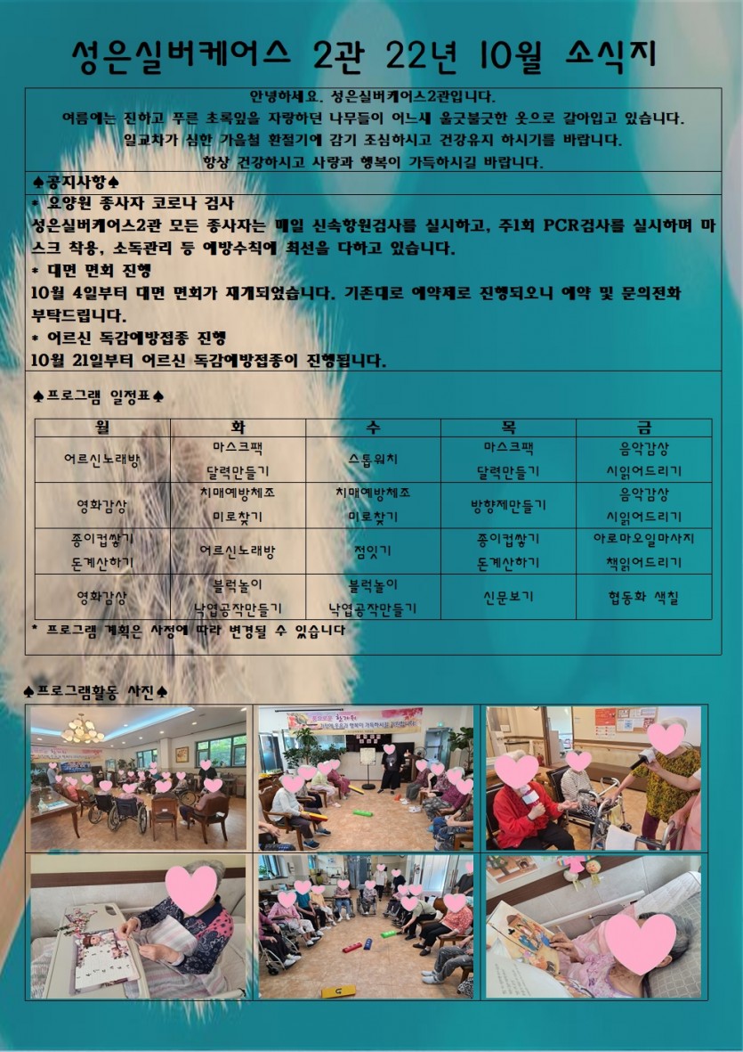 안녕하세요, 성은실버케어스 2관입니다^^